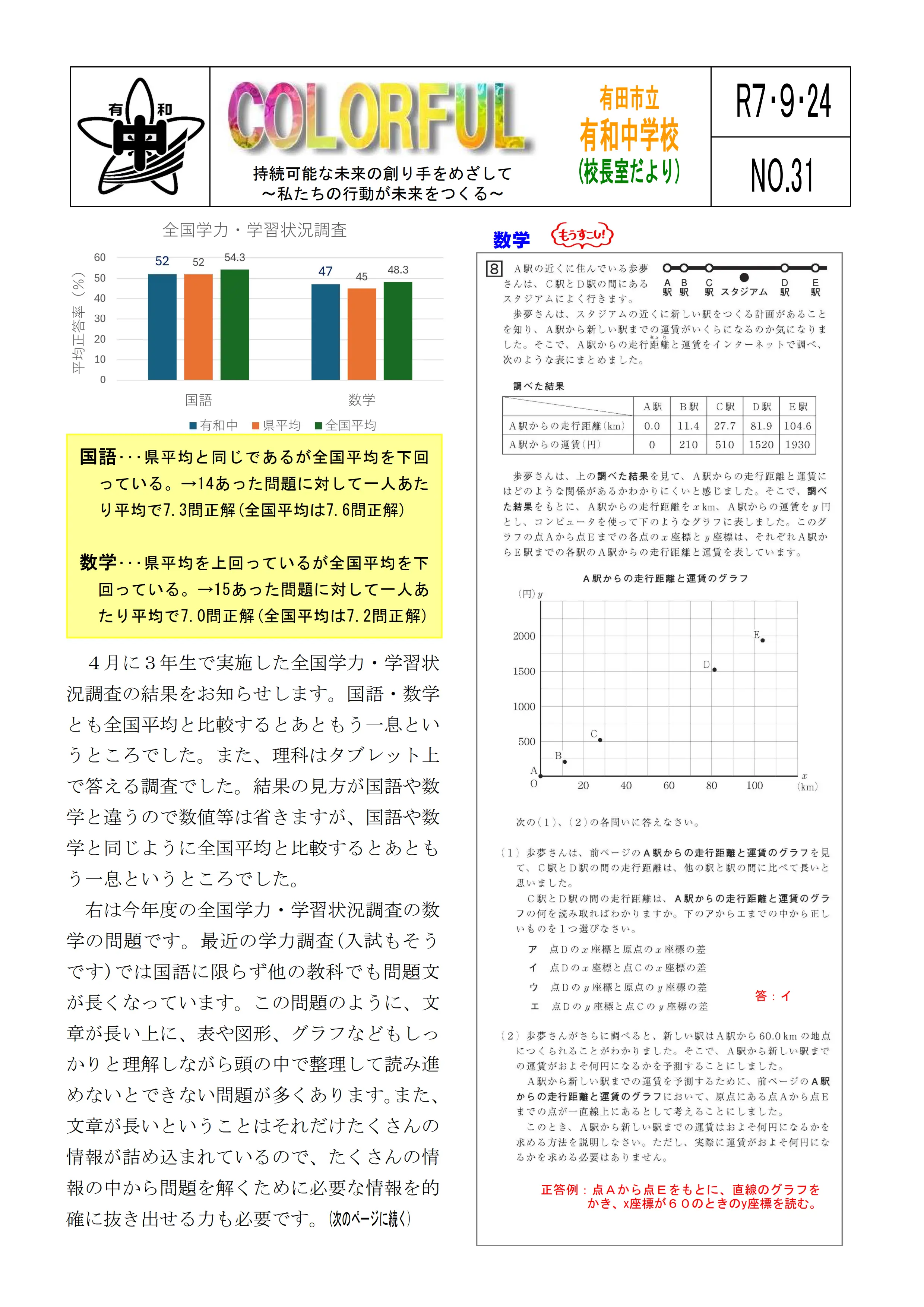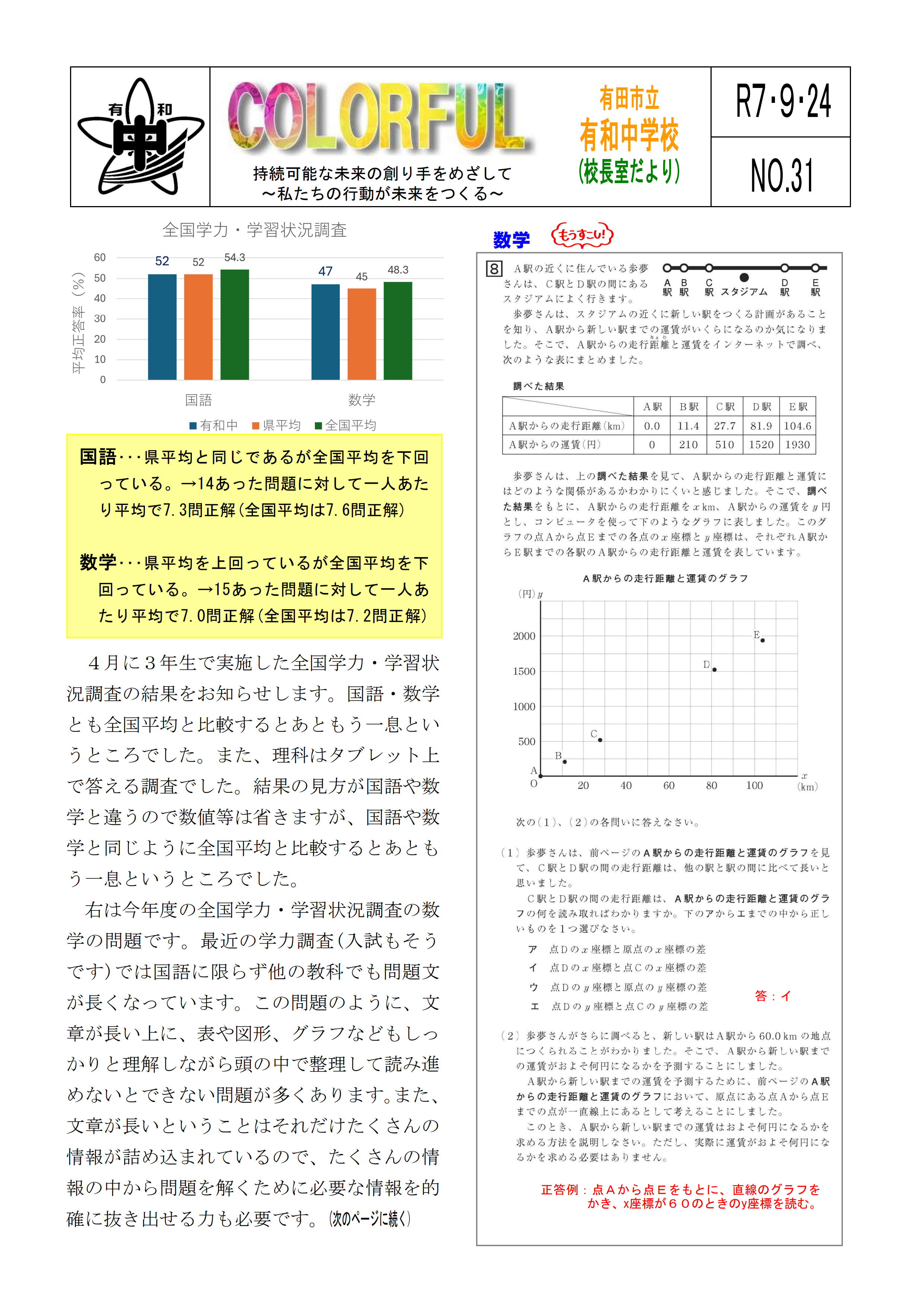 有和中学校入学説明会(保護者)の開催について ” 令和6年度 有和中学校入学説明会資料を追加しました。