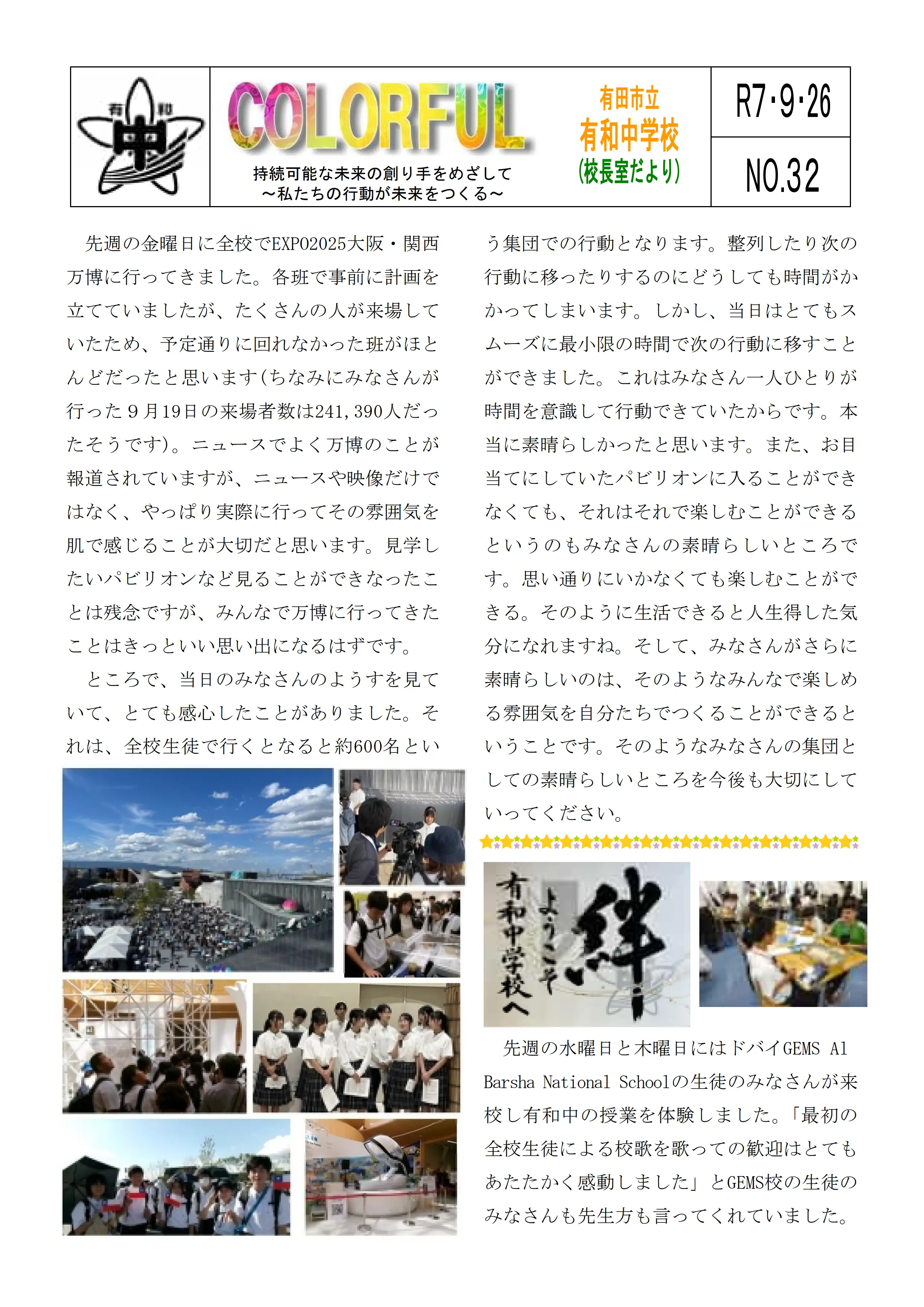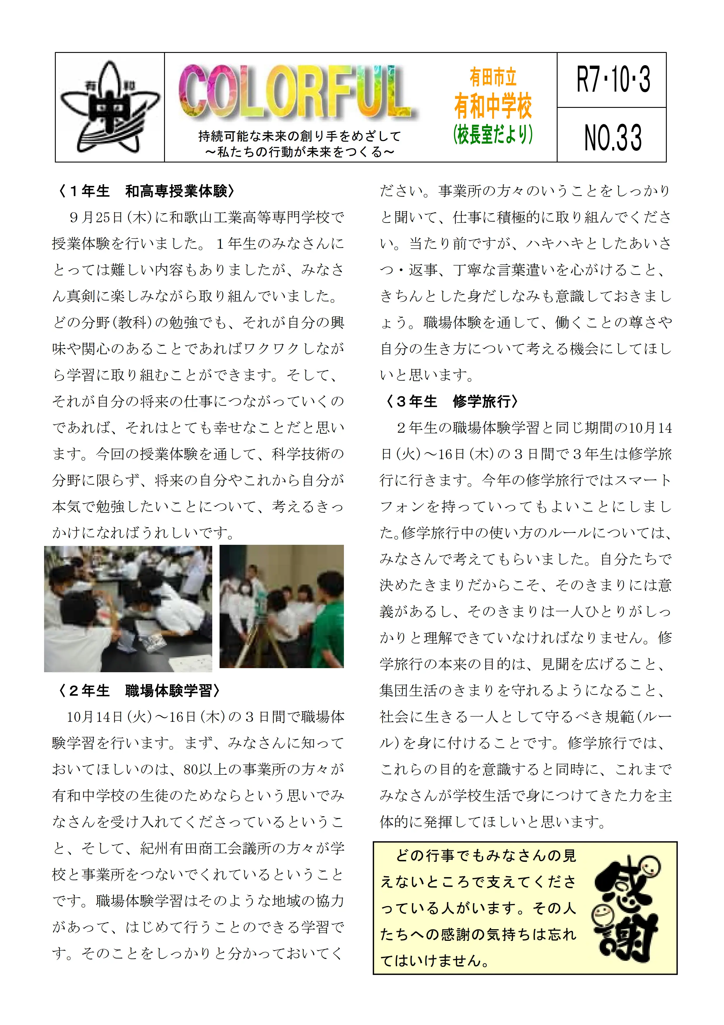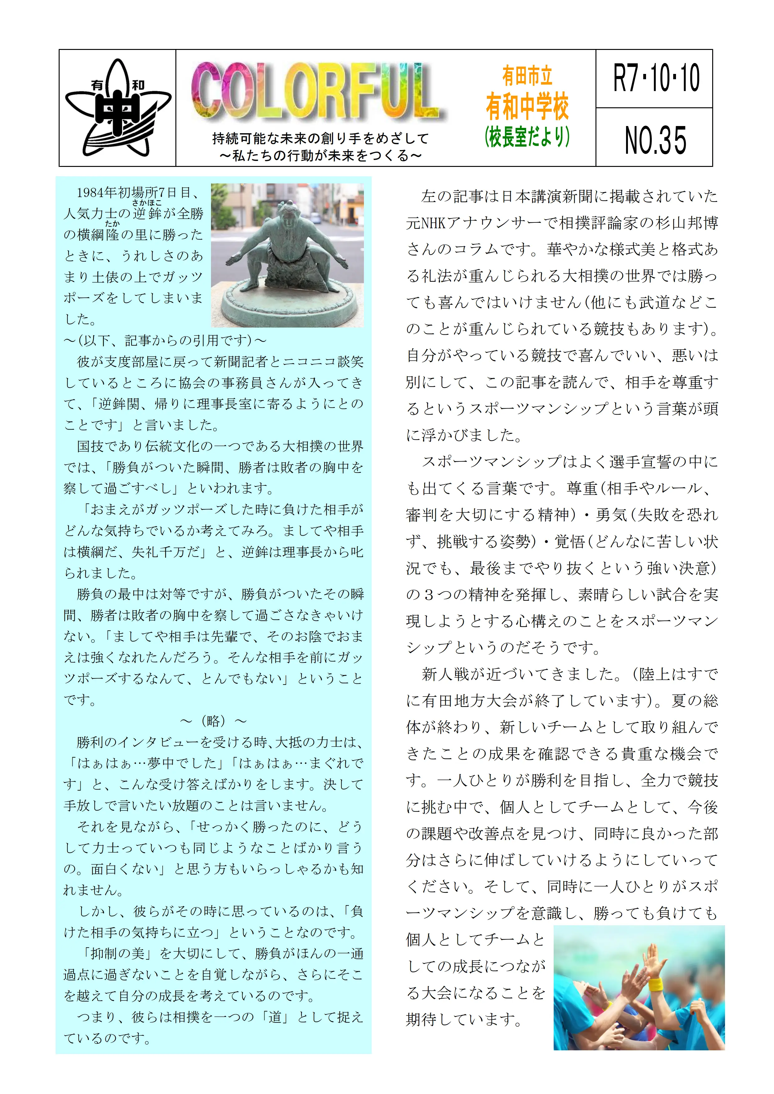 ” 「有和中学校がめざす学校の姿」を掲載しました。