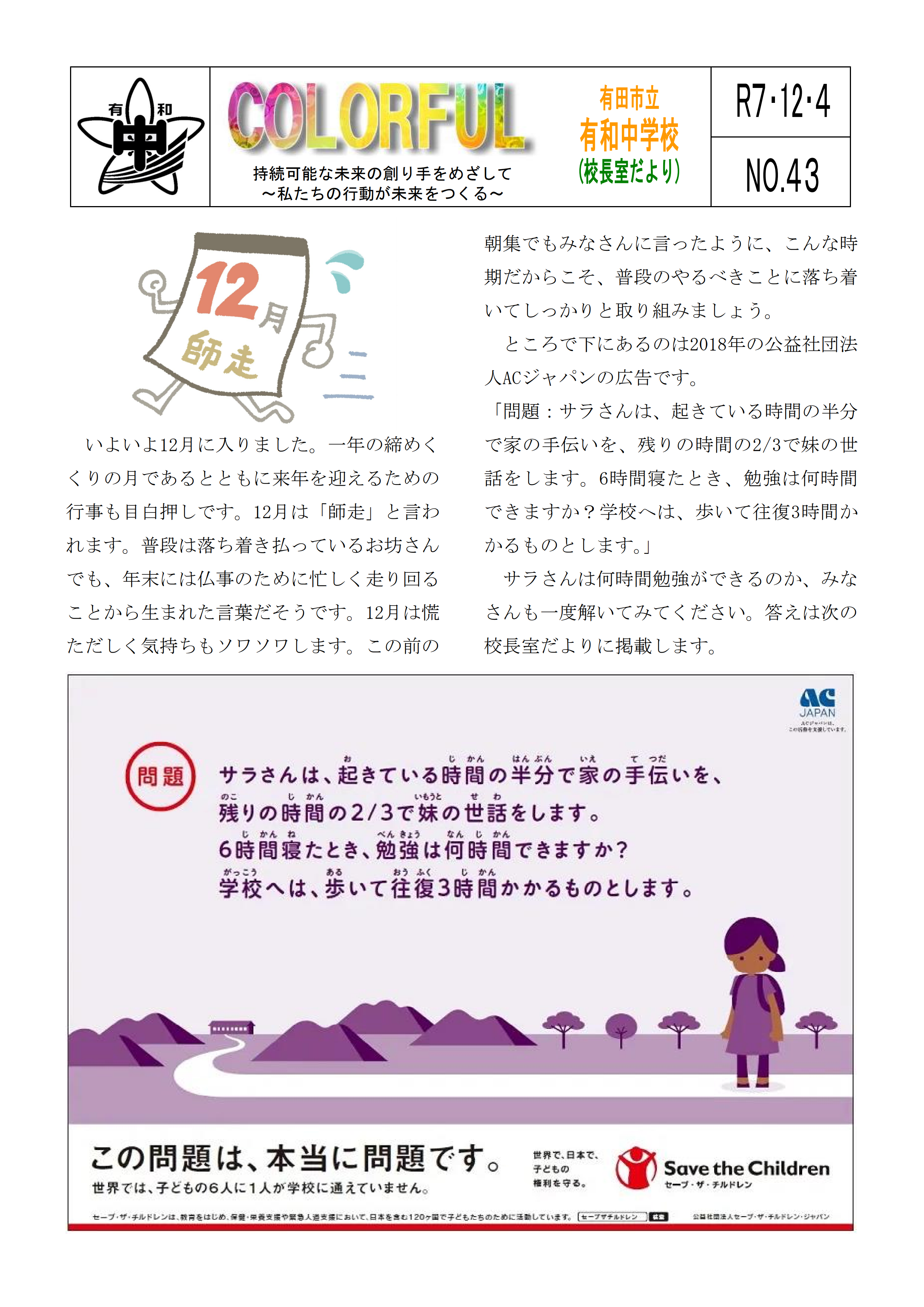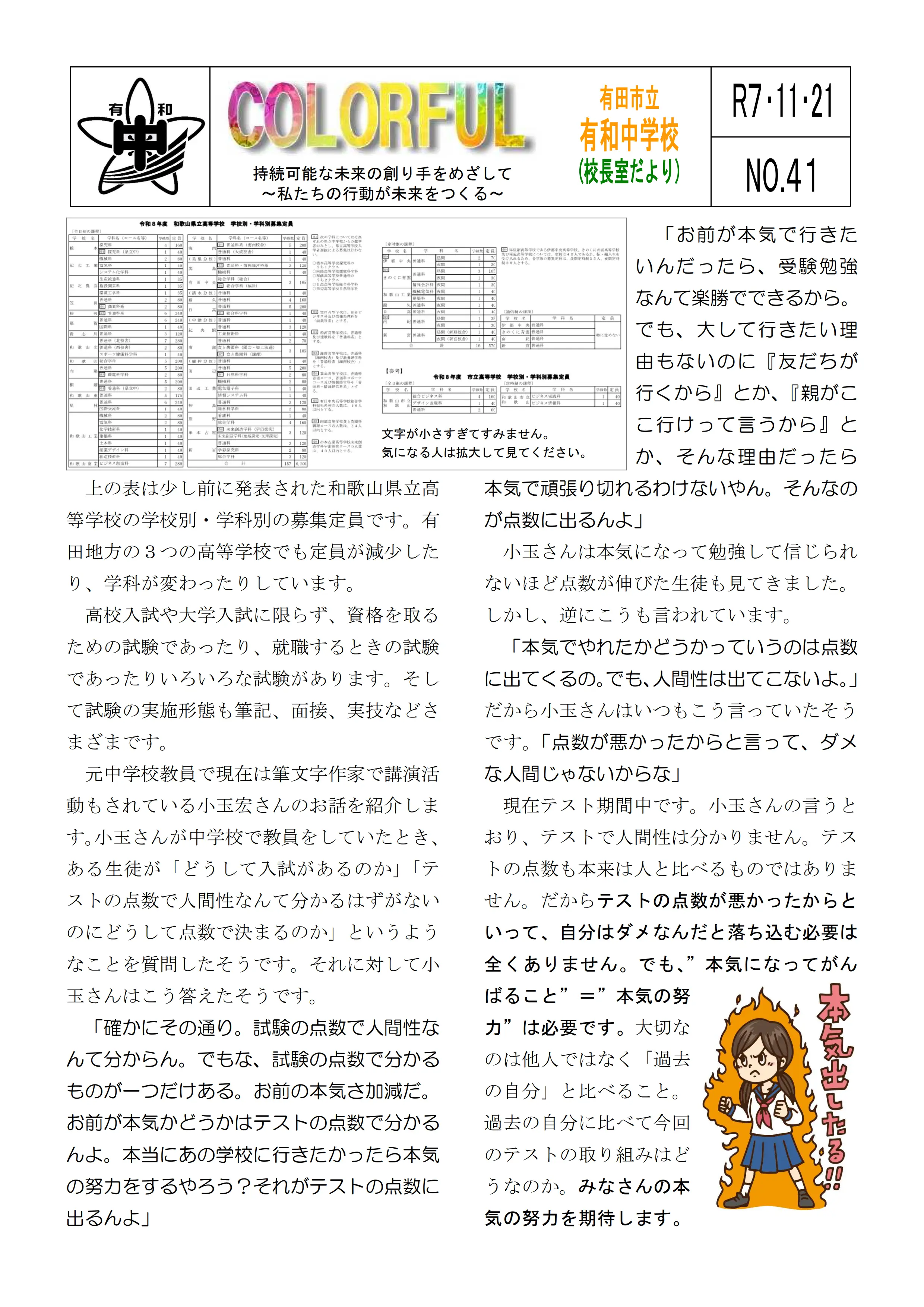 令和7年度 有和中学校入学説明会資料 (PDF ダウンロード)
